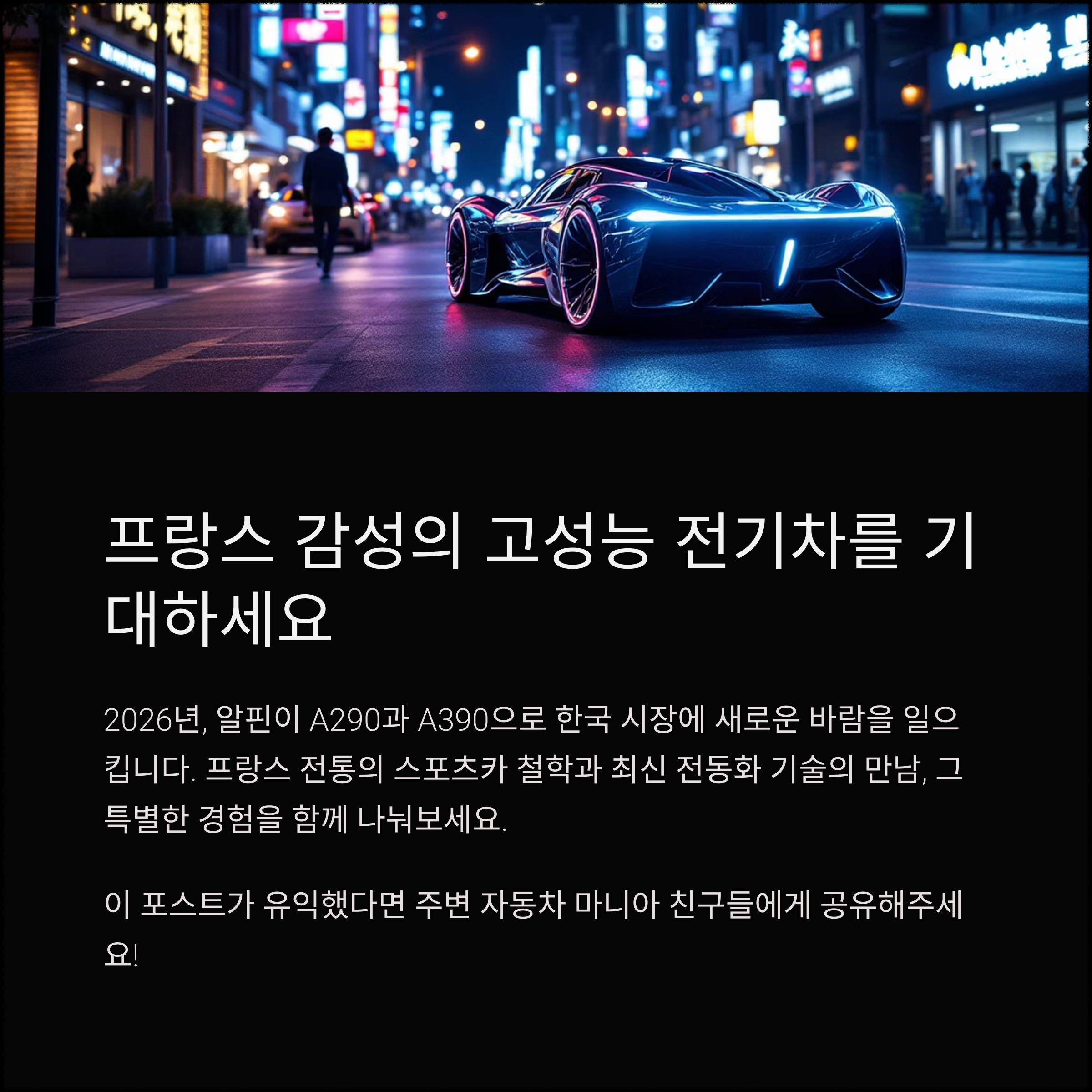 알핀의 A290과 A390 모델은 전기차 시장에서 고성능과 실용성을 동시에 추구하는 소비자들에게 매력적인 선택지가 될 것으로 전망된다. 2026년 한국 시장 진출을 목표로 하는 알핀은 프랑스 전통의 스포츠카 철학과 최신 전동화 기술을 결합해 새로운 시장 영역을 개척할 준비를 마쳤다.