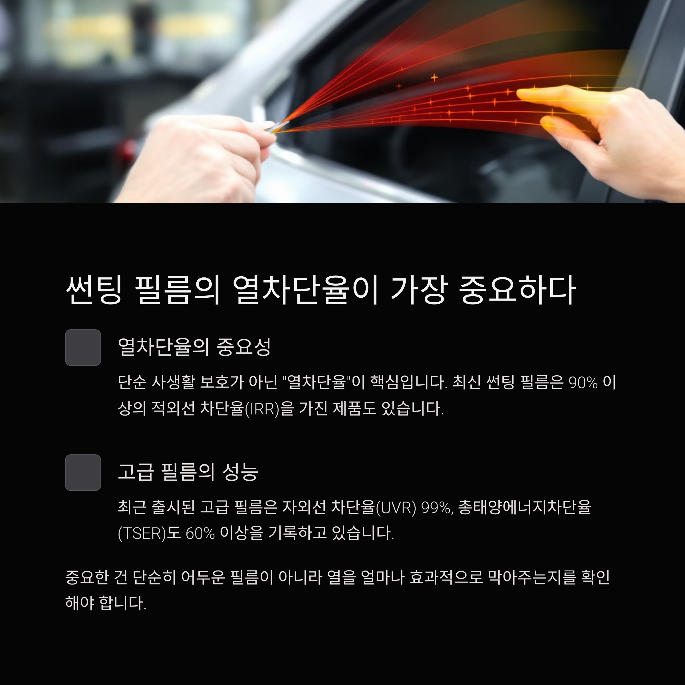 썬팅 필름의 열차단율이 가장 중요하다