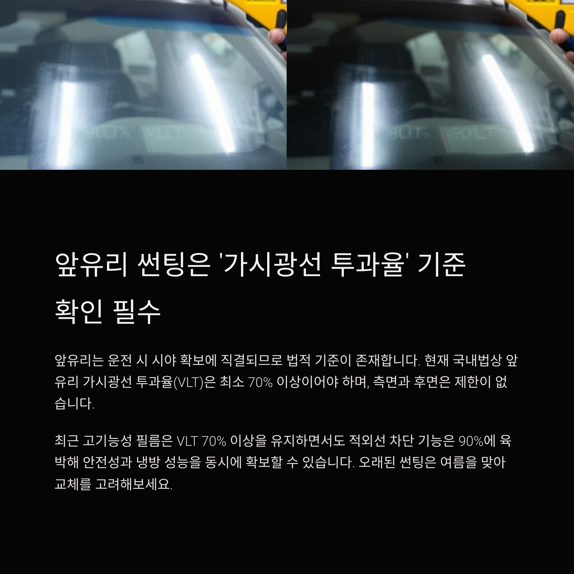 앞유리 썬팅은 '가시광선 투과율' 기준 확인 필수