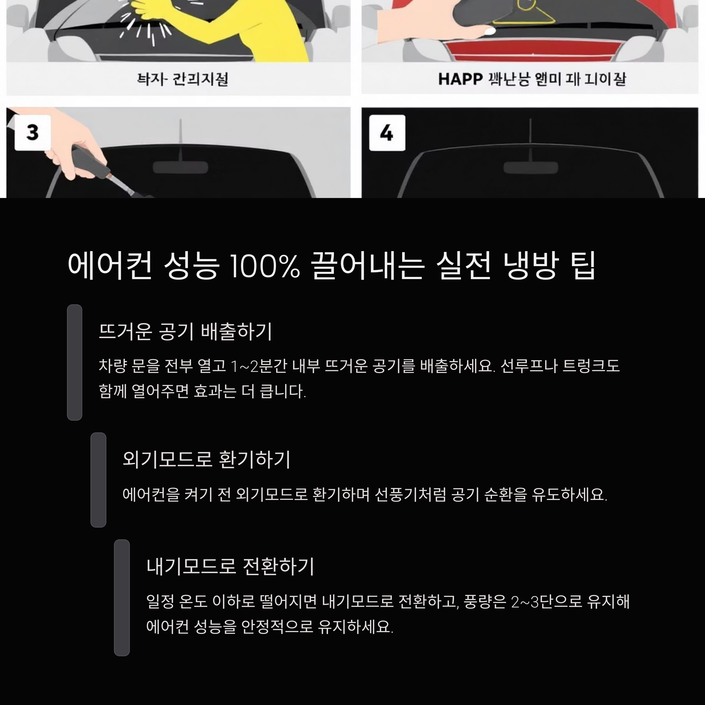 이런 순서를 지키면 차량 내부가 식는 속도는 물론, 연료 효율도 함께 좋아집니다.