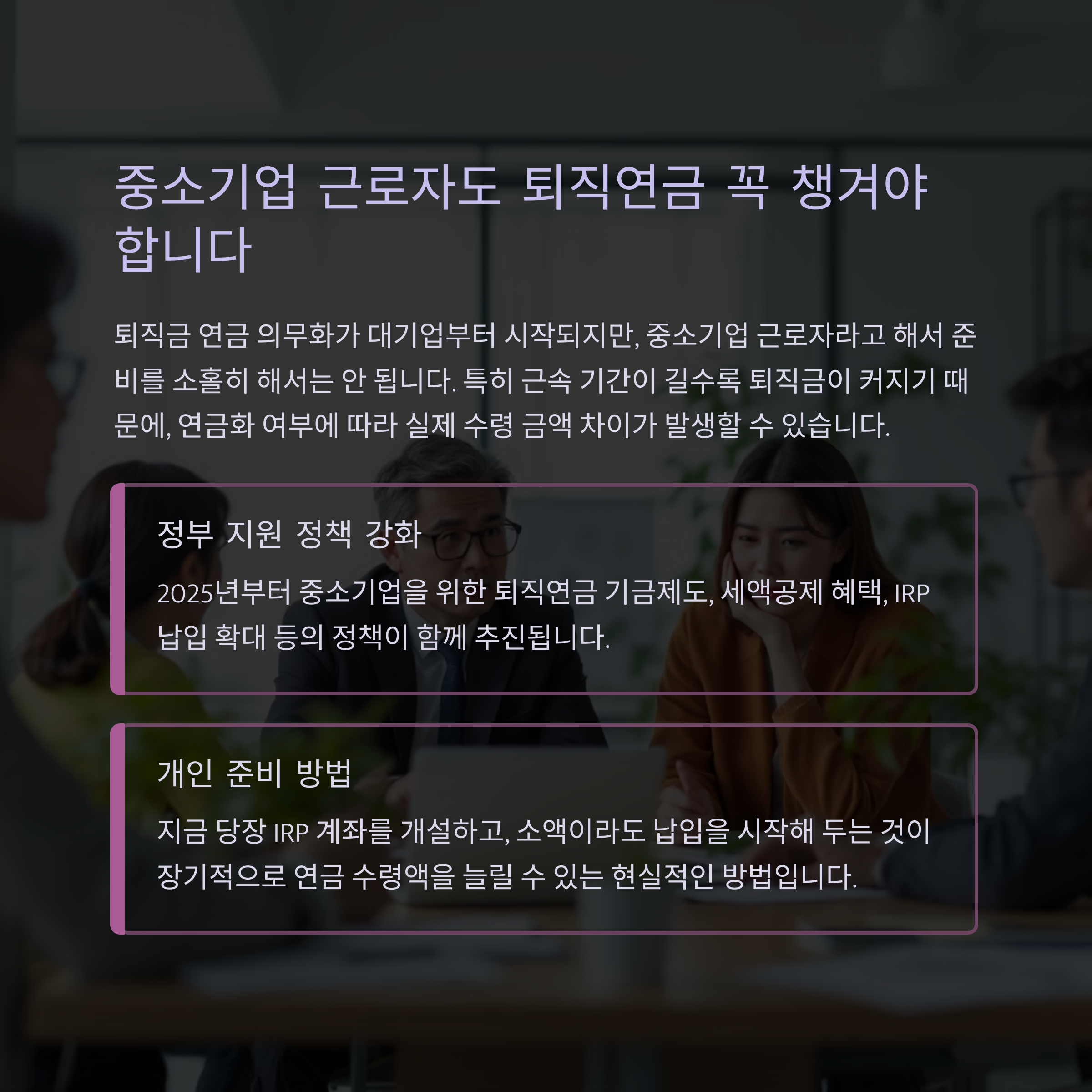 중소기업 근로자도 퇴직연금 꼭 챙겨야 합니다