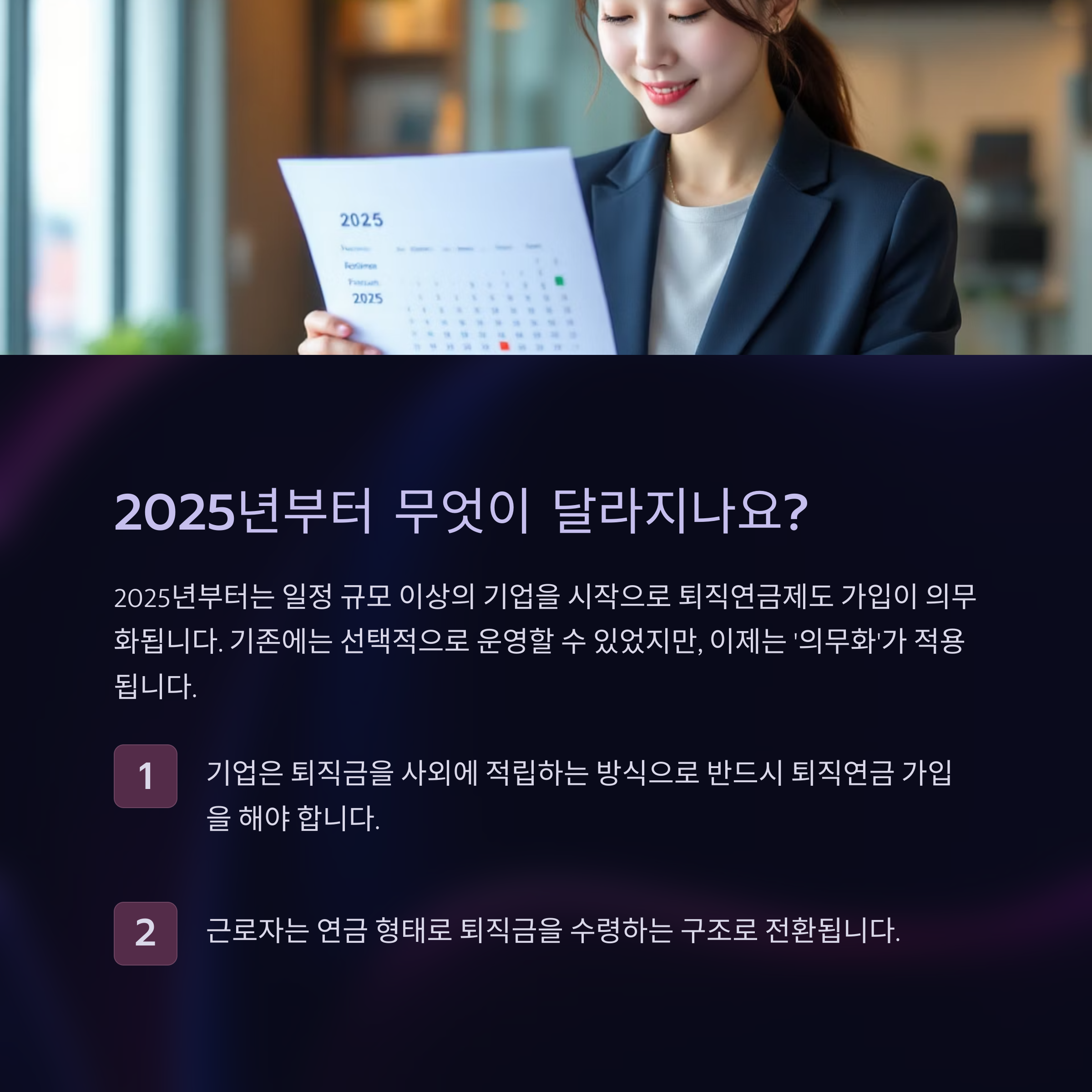 퇴직금 연금 의무화는 더 이상 먼 미래의 이야기가 아닙니다. 2025년부터 본격적으로 적용되며, 중장기적으로 전 국민을 대상으로 확대될 가능성이 매우 높습니다.